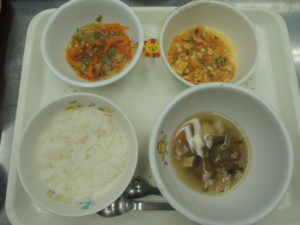 軟飯、魚の野菜煮、なすのけんちん汁