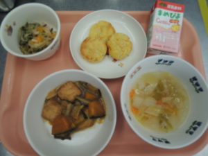 揚げ南瓜と生揚げの煮物、春雨サラダ