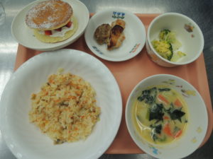 ブロッコリーのごまサラダ、豆乳コーンスープ