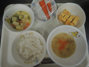 軟飯、ツナオムレツ、じゃが芋の煮浸し